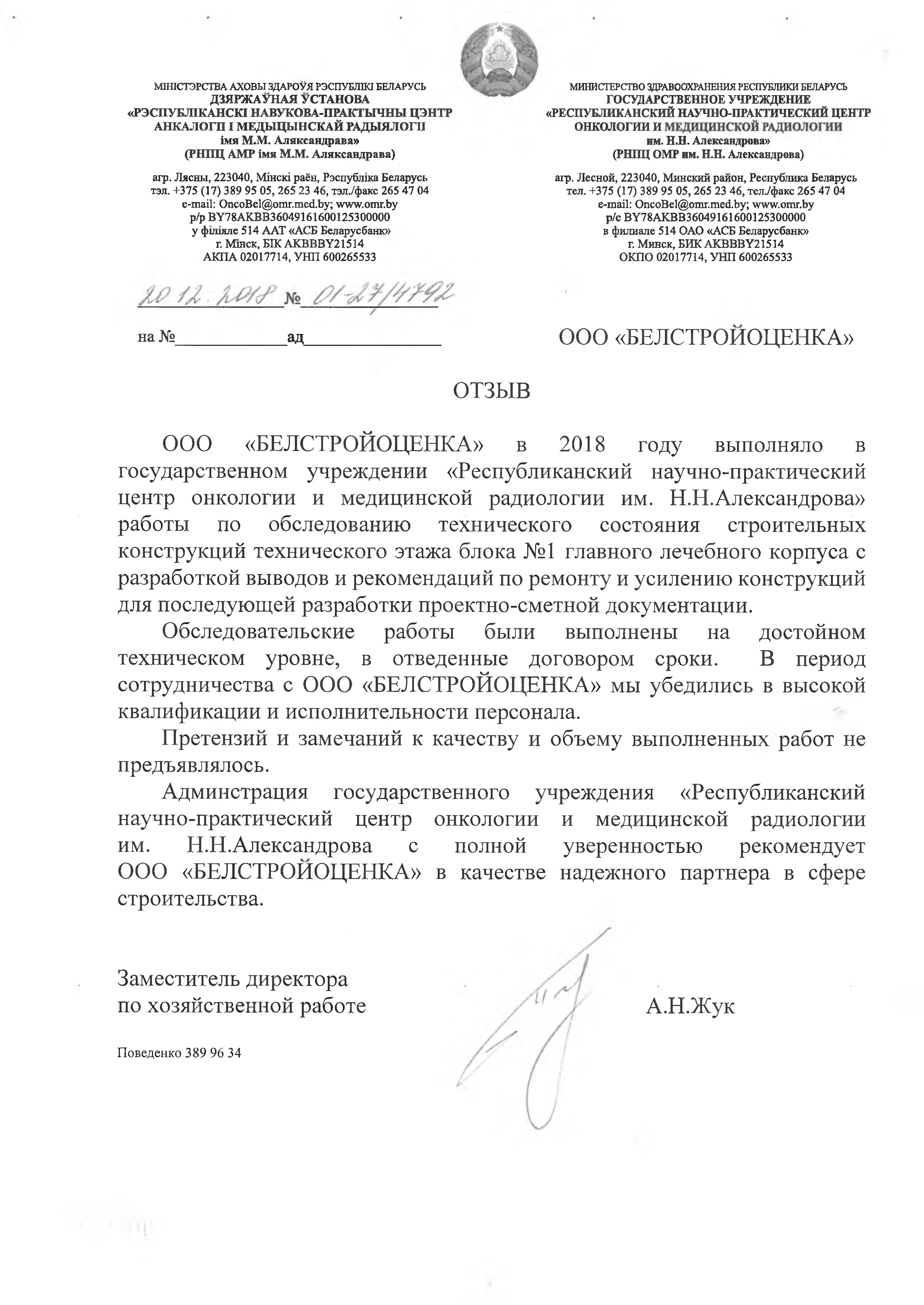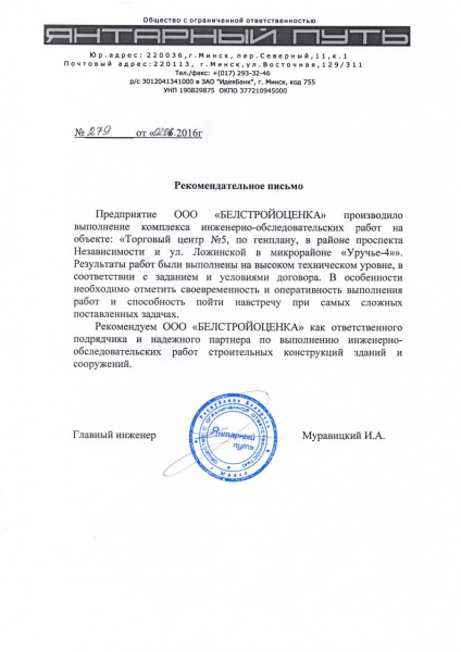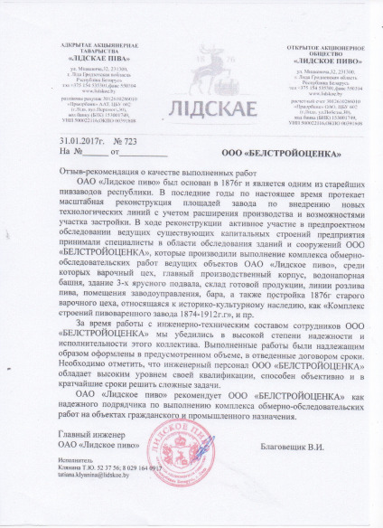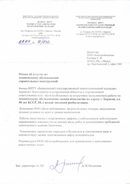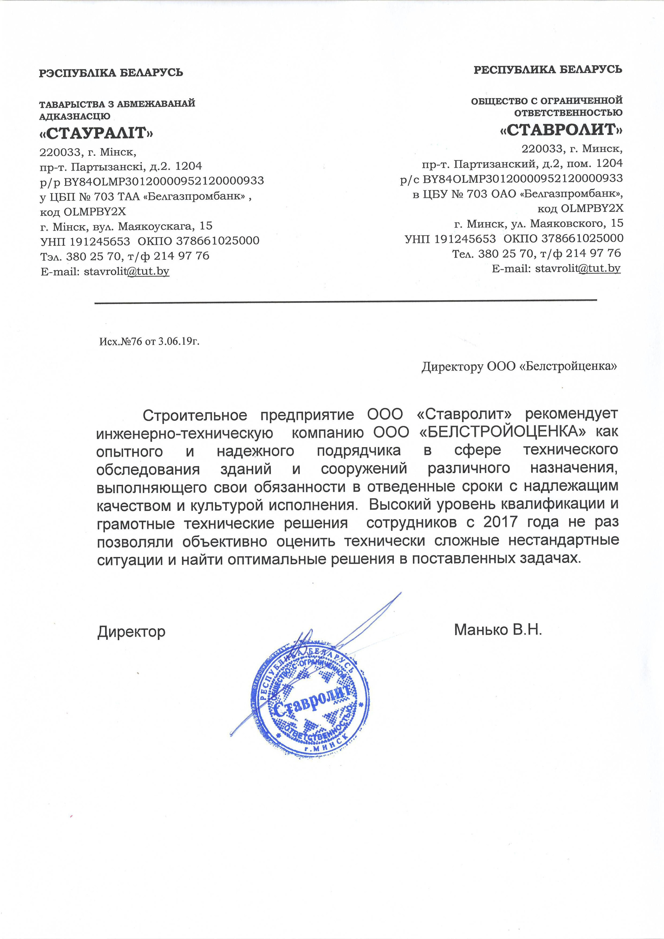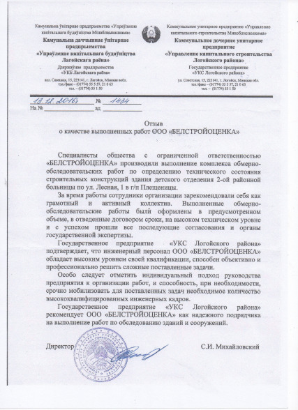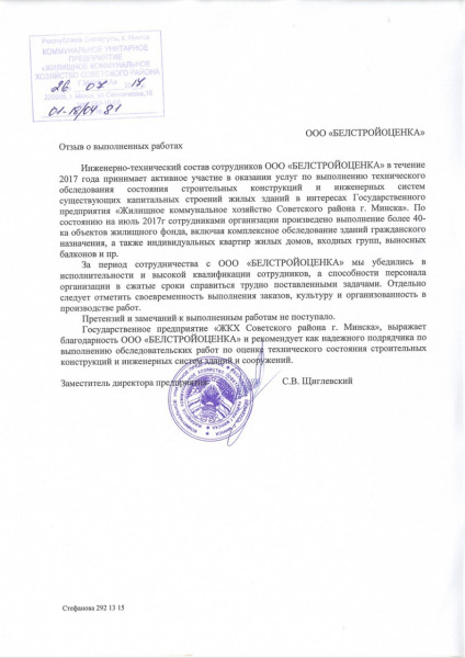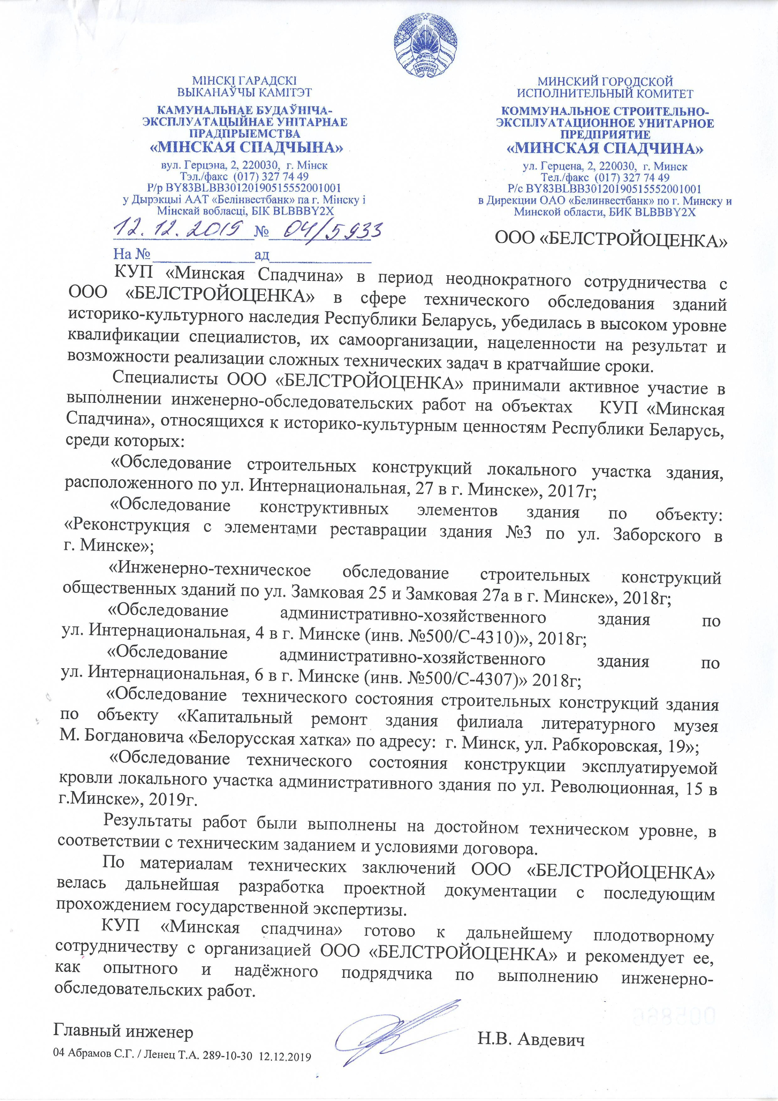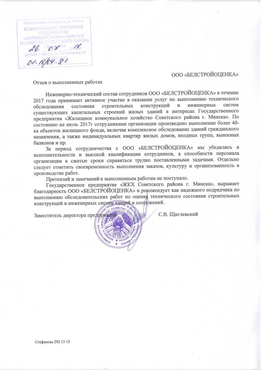 ООО "БЕЛСТРОЙОЦЕНКА" осуществляет деятельность в области обследования технического состояния зданий и сооружений промышленного и гражданского назначения различной степени сложности по всей территории РБ. Наша организация имеет соответствующие разрешающие документы на проведение данных видов работ.