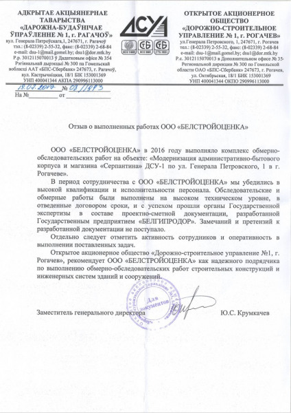 На предприятии разработана, задокументирована, внедрена и постоянно совершенствуется система менеджмента качества проектно-изыскательских работ, разработанная на основании требования стандартов СТБ ISO 9001-2015.